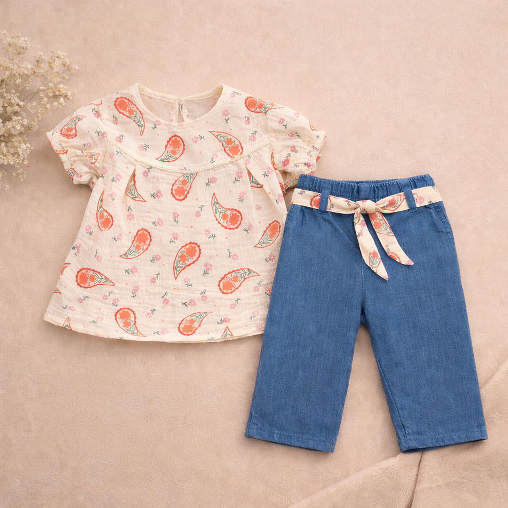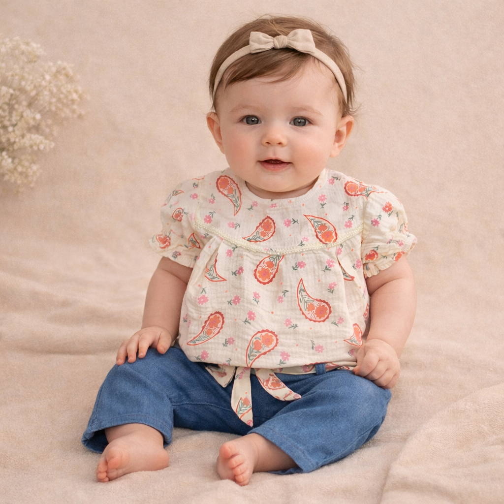 Un ensemble délicat au style printanier, parfait pour habiller bébé avec confort et raffinement au quotidien comme pour les occasions spéciales.